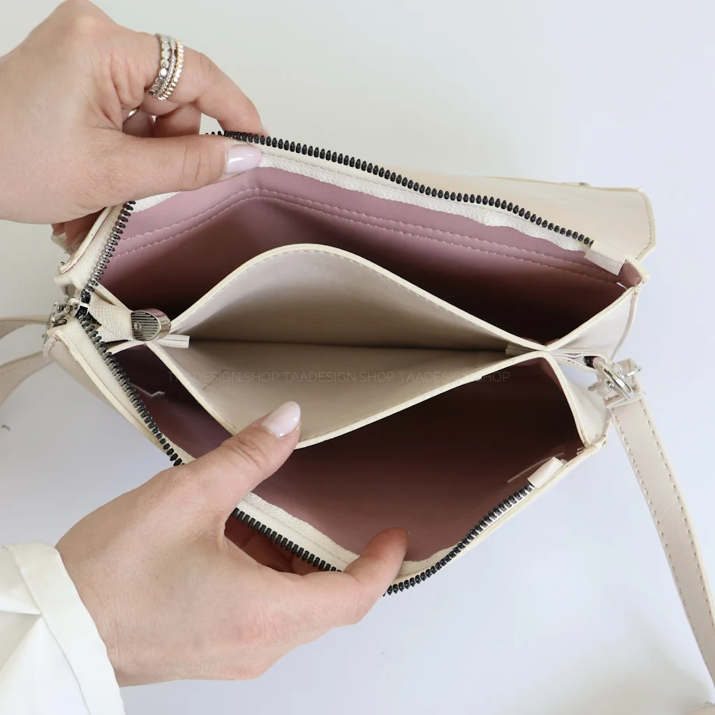 - دارای: ۳ فضای مجزا بهمراه زیپ و داخل کیف دارای یک جای کارتی و درب کیف بهمراه قفل آهنربایی
