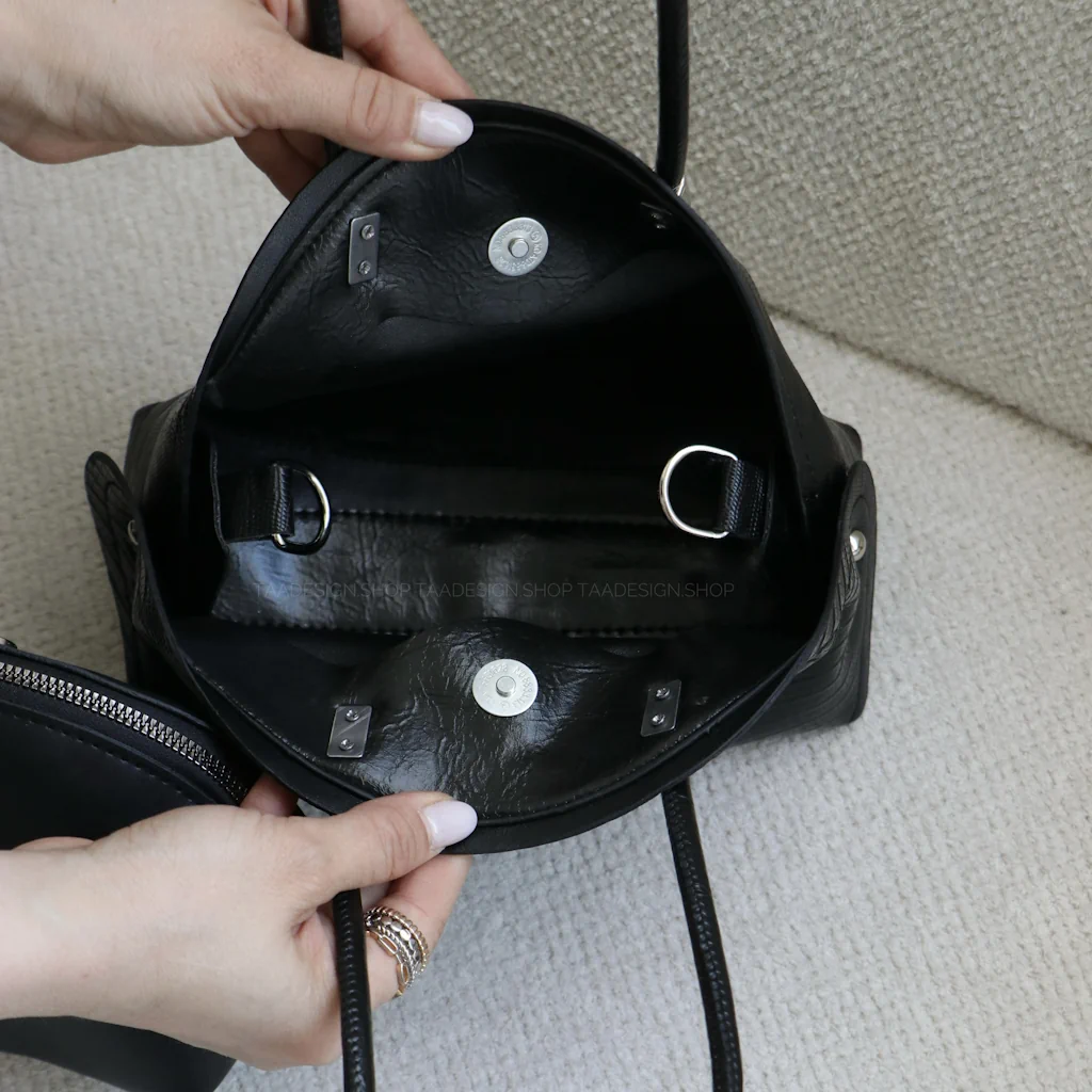 - فضای داخل و بیرون کیف : یک فضای کلی بهمراه قفل آهنربایی و داخل کیف دارای یک کیف آرایشی میباشد.