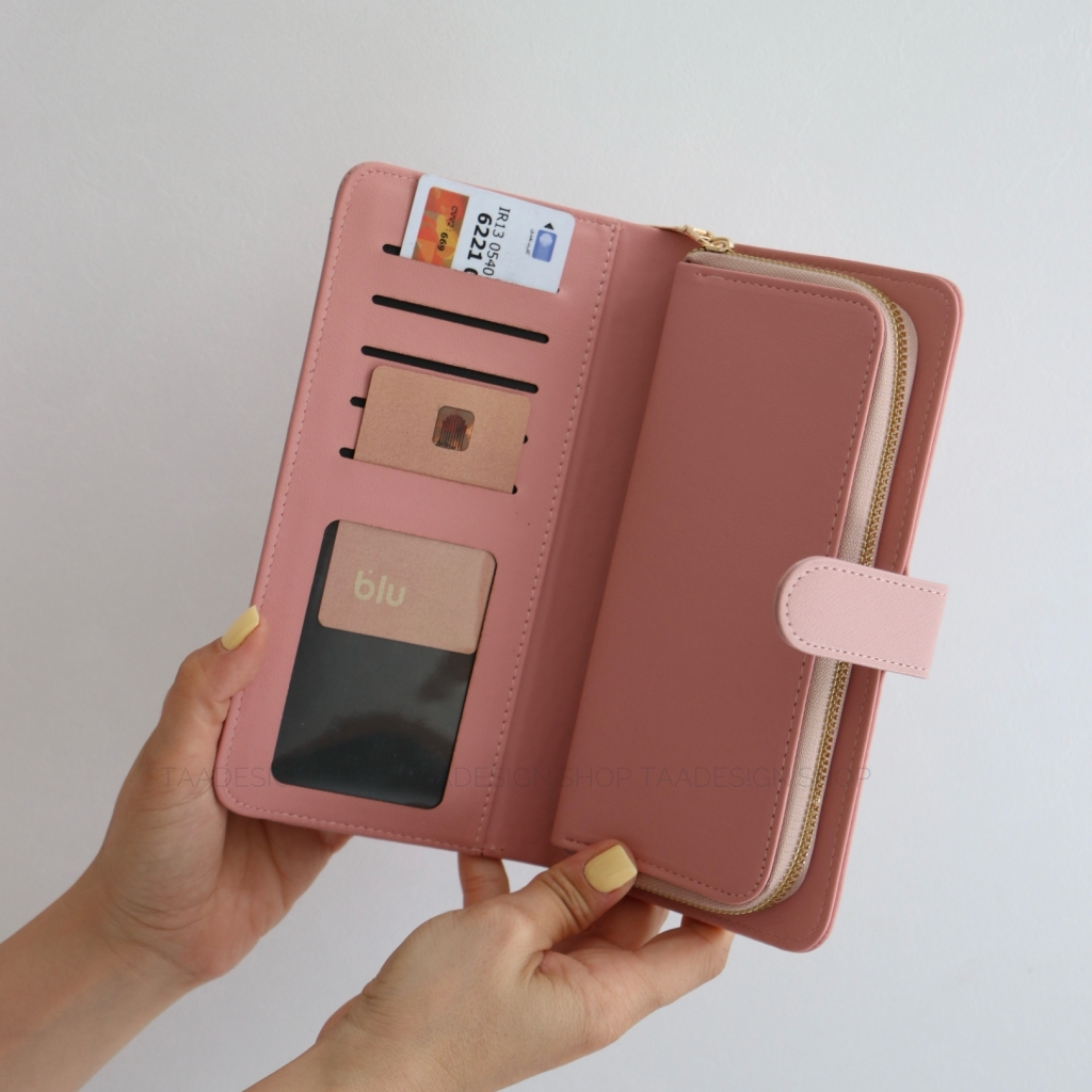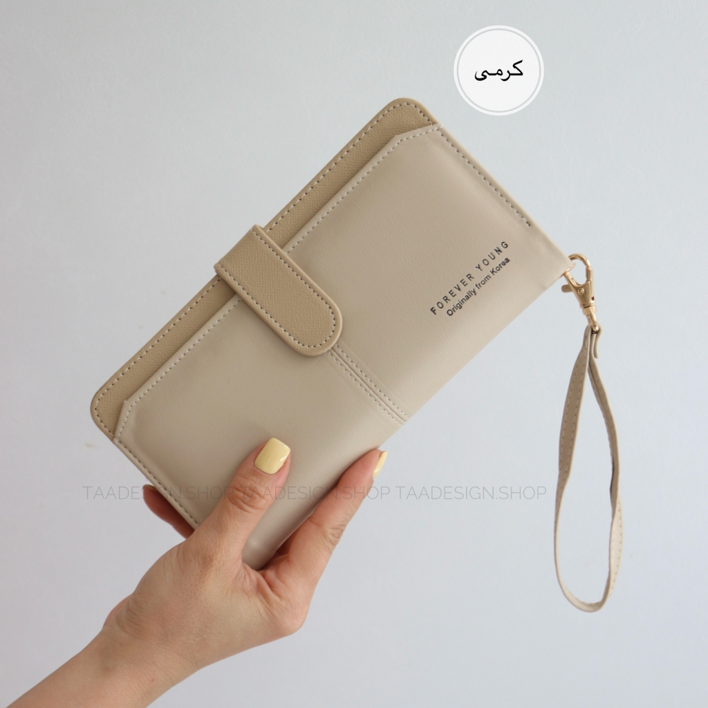 این کیف پول طوری طراحی شده است که به راحتی پول، کارت ها و گوشی شما را پوشش دهد و با بند مچی به راحتی قابل حمل باشد.
