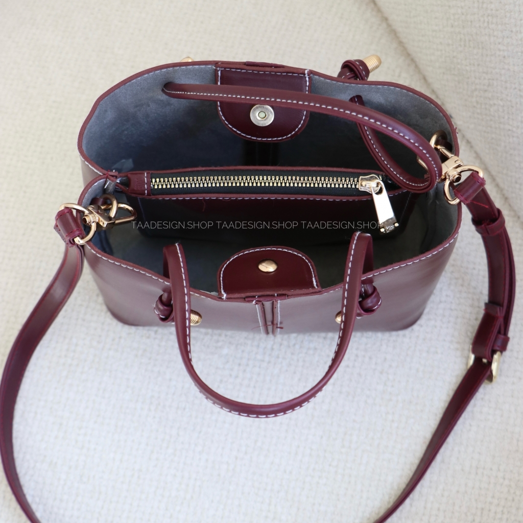همچنین کیف رانا 4 عدد یراق طلایی نصب شده دارد که مانع تماس کامل کفه کیف با سطوح مختلف شده و از کثیفی آن جلوگیری میکنند. رانا در رنگبندی کرمی، آلبالویی، گردویی، مشکی، آدامسی، قهوه ای سوخته و قهوه ای روشن در تادیزاین موجود است و شما میتوانید آن را طبق سلیقه خود خریداری کنید.