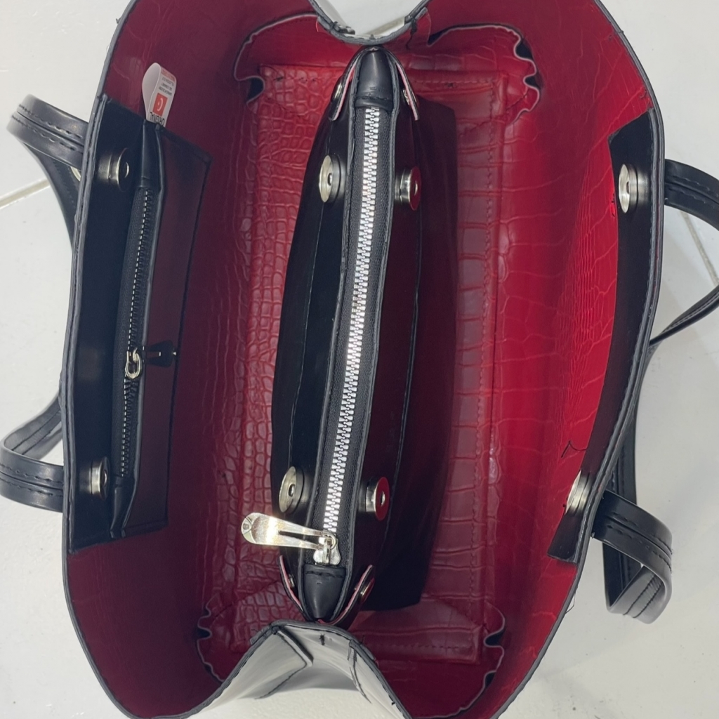 - داخل کیف از چرم قرمز رنگ استفاده شده