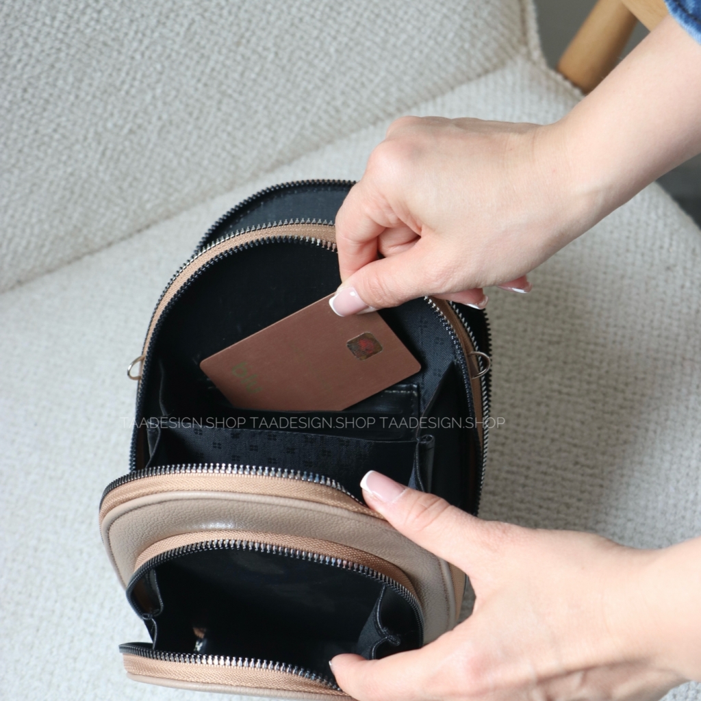 این کیف دارای چهار فضای مجزا به همراه زیپ و دارای جای کارت در داخل کیف می باشد و موبایل داخل کیف جا میشود