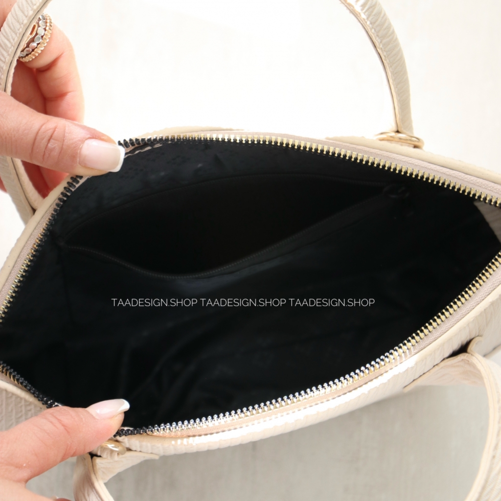 این کیف دارای یک فضای کلی به همراه زیپ میباشد و داخل کیف یک جیب به همراه زیپ میباشد.