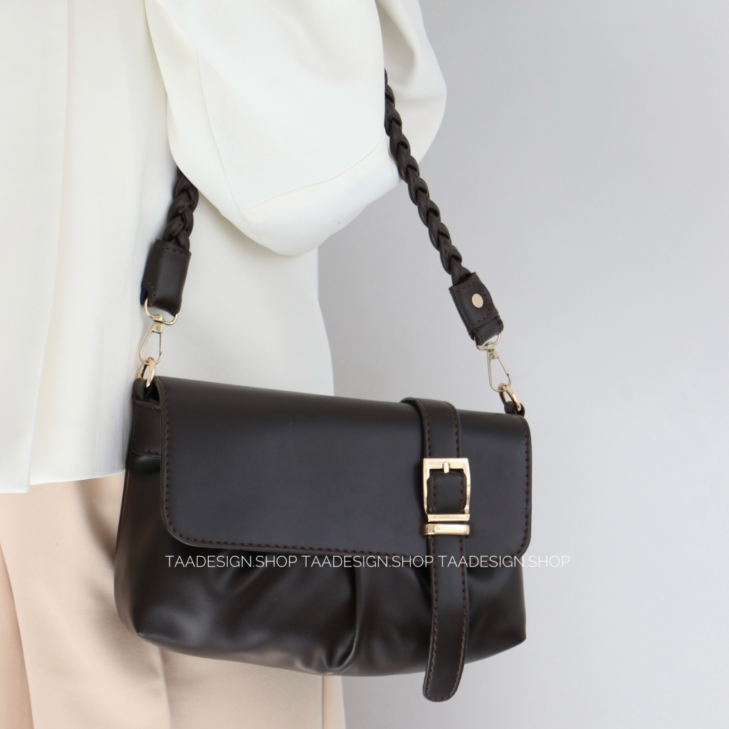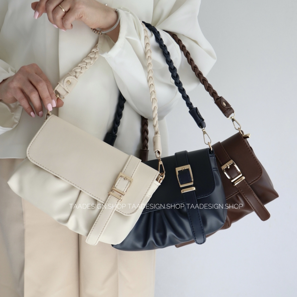این کیف یک طراحی زیبا با طرح کمربند در قسمت جلو دارد که نمای زیبایی به آن داده است. همچنین یک بند دستی بافته شده چرمی دارد که متفاوت از بندهای ساده است و باعث شده جلوه گر باشد. یراق آلات طلایی رنگ کیف نیز به قشنگی آن افزوده است. درنهایت آنچه زیبایی کیف را تکمیل کرده است تنوع در رنگبندی کیف است که در عکسها میتوانید ببینید.