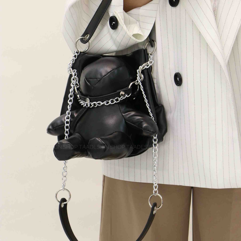 اکسسوری گاهی میتواند فقط یک وسیله نباشد و در کنارش کلی حس خوب دیگر را هم تجربه کرد و حالا در طراحی کیف ها هم هنرمندان به این نکته توجه دارند و کیف هایی نظرمان را جلب میکنند که عروسک های آویزی دارند. کیف دخترانه تدی دقیقا طوری طراحی شده که یک زیبایی و ظرافت و حس خوب را با یک تلفیق و یکی شدن با یک کیف به همراه داشته باشید و آنقدری زیبا هست که اگر فیلم و کارتون و داستان تدی را ندانید، بازهم این کیف نظرتان را جلب کند.