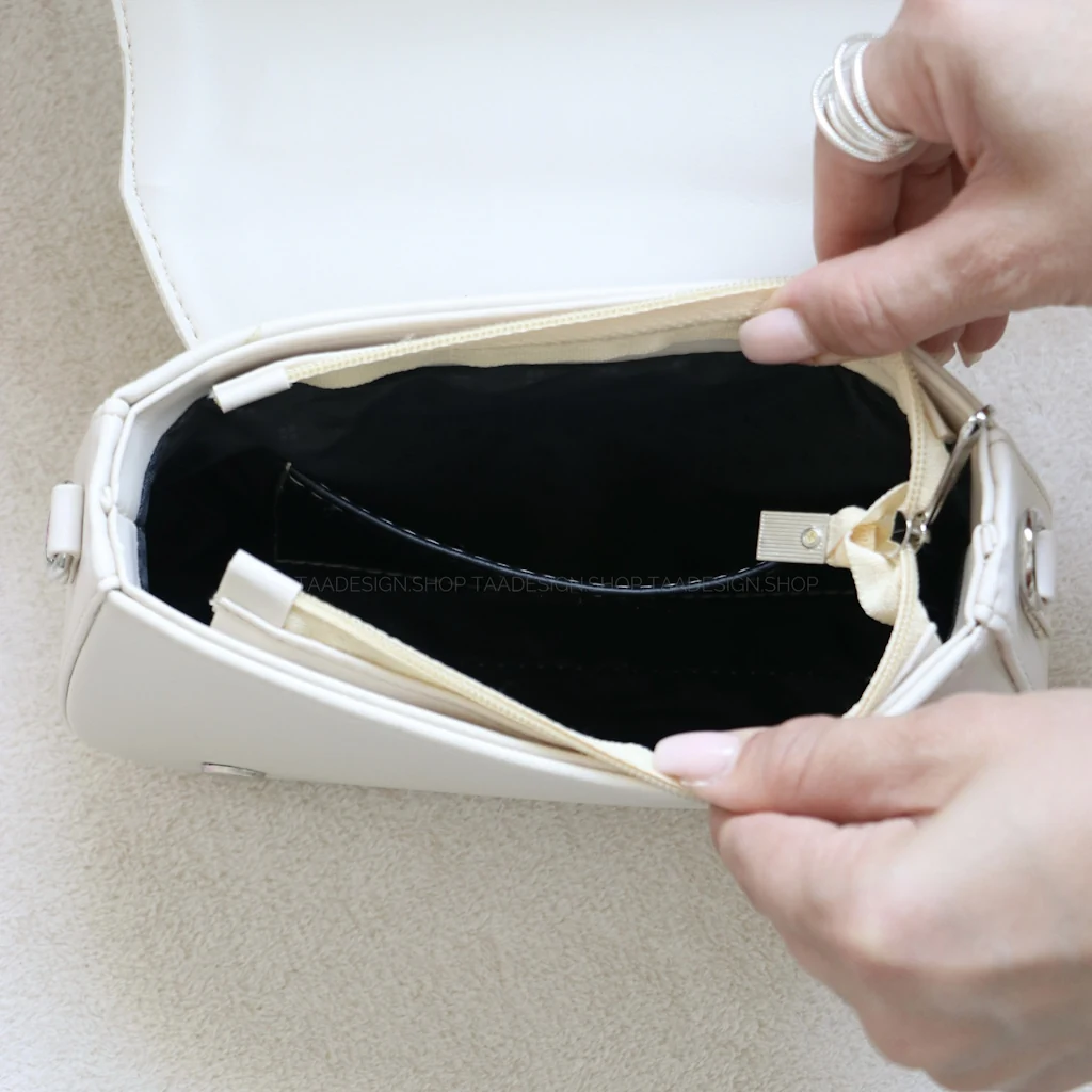 - فضای داخلی کیف: دارای یک فضای کلی به همراه زیپ و درب قفل آهنربایی و داخل کیف دارای یک جیب