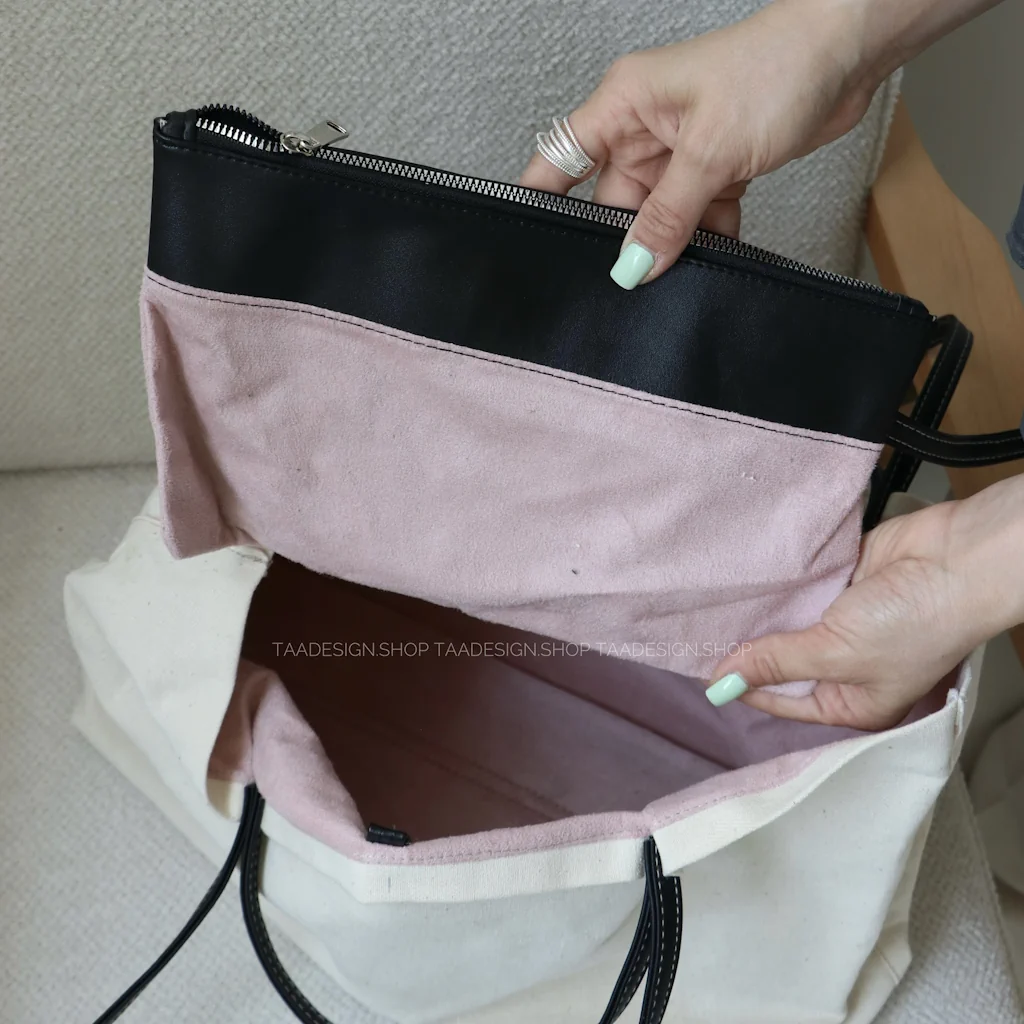 - فضای داخل و بیرون کیف: دارای یک فضای کلی بهمراه قفل قلاب بسته میشود و داخل کیف دارای یک کیف به همراه زیپ میباشد