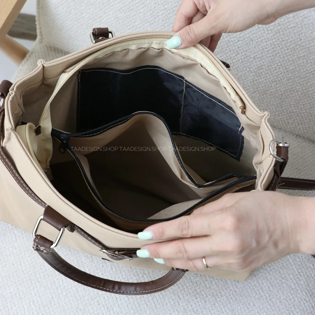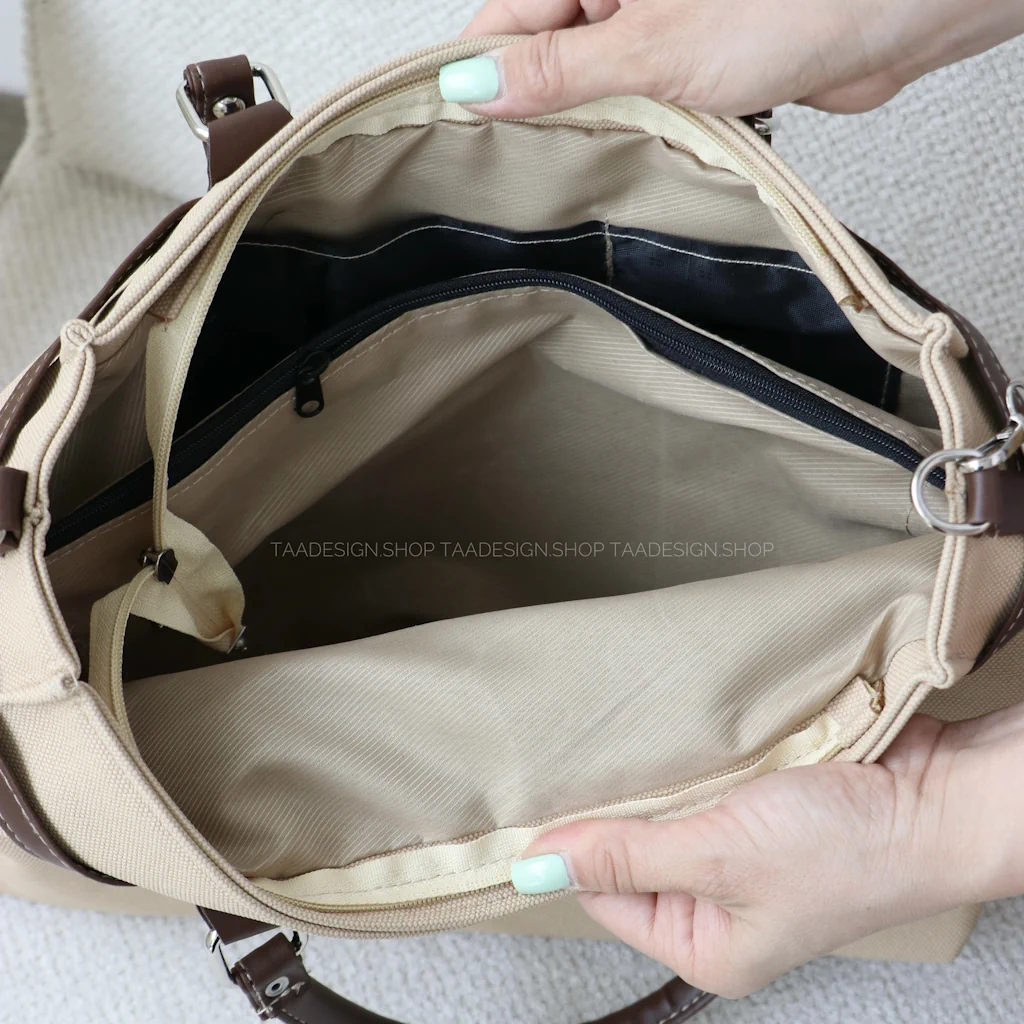 - داخل کیف دارای یک جیب، زیپ و یک جای کارت
