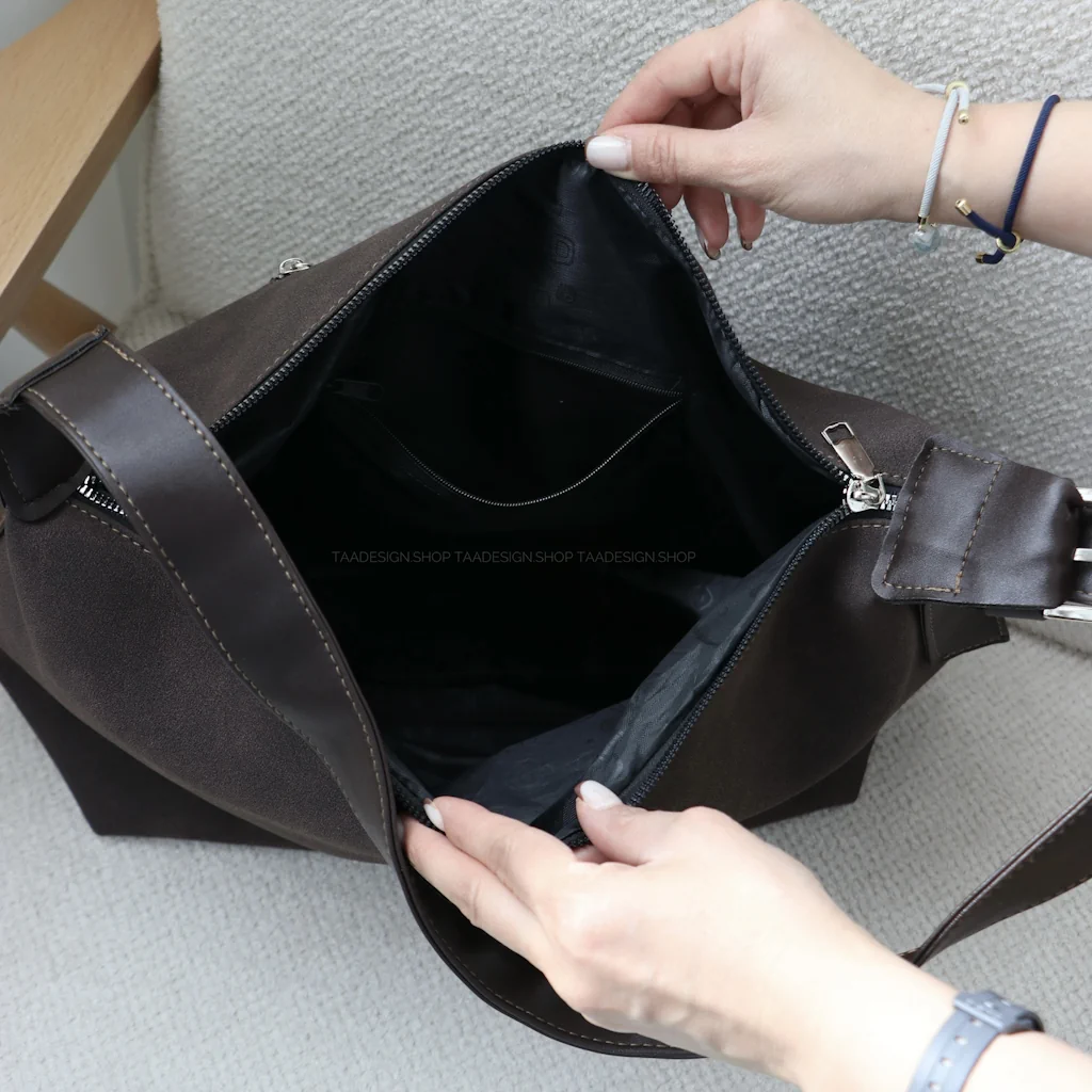 - فضای داخل و بیرون کیف: دارای یک فضای کلی به همراه زیپ و داخل کیف دارای جیب