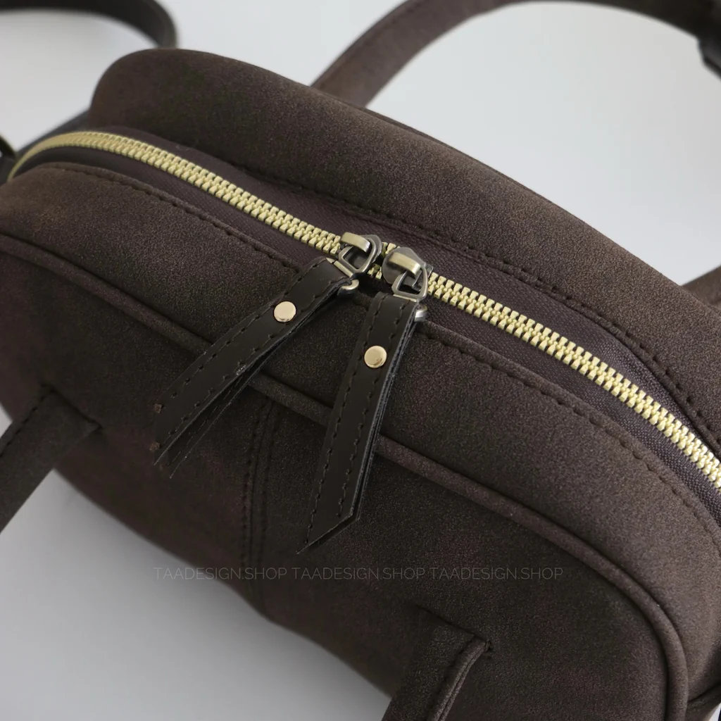 کیف پاپوچی جیر در رنگ قهوه ای موجود است.