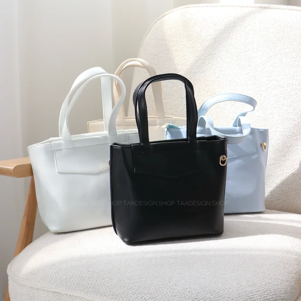 کیف چام در رنگ سفید، نسکافه ای، مشکی، آبی و کرم روشن موجود است.