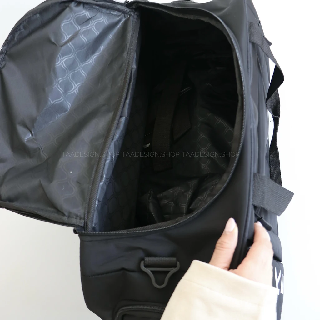 - فضای داخل کیف: کیف دارای یک فضای کلی به همراه زیپ و جلو و پشت کیف دارای ۴ جیب بهمراه زیپ و دارای جای کتونی
