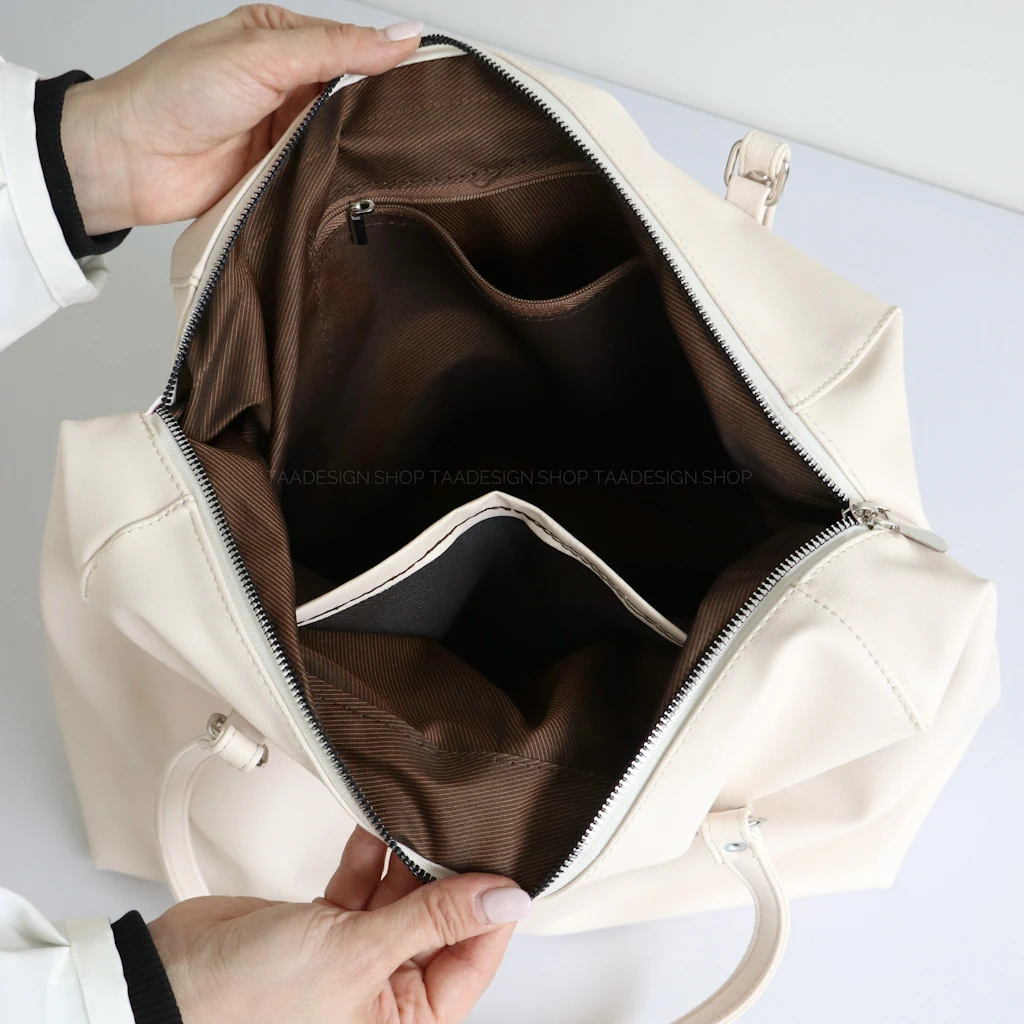 - فضای داخل و بیرون کیف: دارای یک فضای کلی بهمراه زیپ و داخل کیف دارای دو جیب و یک جیب بهمراه زیپ میباشد.