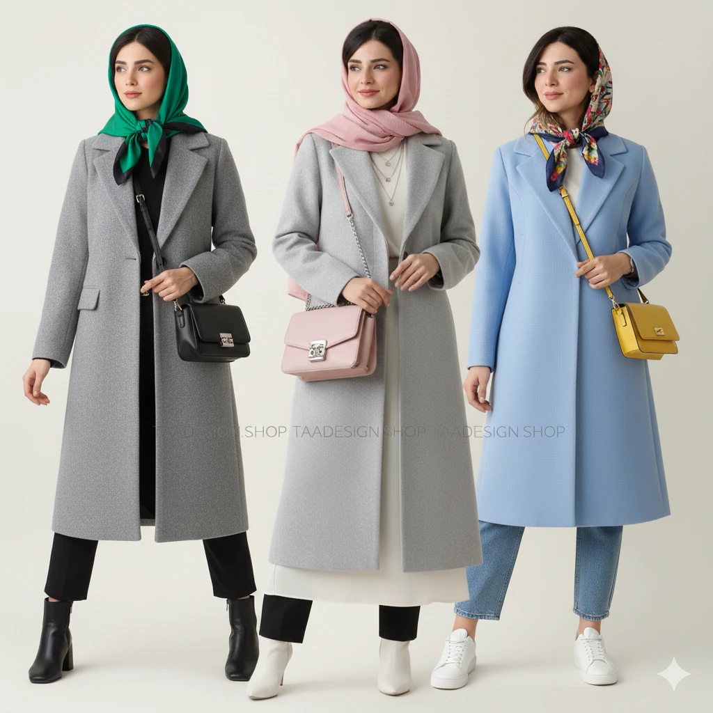 - پالتوی طوسی مثل یک پایه خنثی برای رنگ های زنده